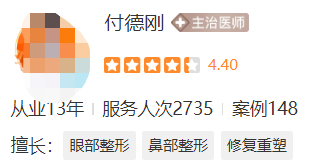 醫(yī)生介紹:付德剛醫(yī)生,主治醫(yī)師,從業(yè)13年醫(yī)生還會(huì)為患者提供術(shù)后的飲食和生活建議,幫助患者更好地適應(yīng)術(shù)后生活。醫(yī)生的專業(yè)技術(shù)和關(guān)懷,讓患者在手術(shù)過程中感受到了溫暖和安心,患者不僅得到了美麗的外表,更重要的是得到了醫(yī)生的關(guān)愛和支持,因此大家信任他。
