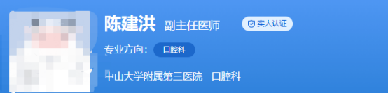 醫(yī)生介紹:陳建洪是副主任醫(yī)師,碩士生導師。在口腔行業(yè)已經(jīng)工作了20多年,對于各種的牙齒疾病,也是見過治過不少,臨床的經(jīng)驗更是十分的豐富。