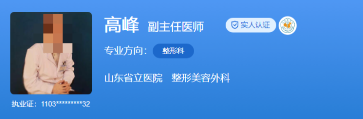 醫(yī)生介紹:高峰醫(yī)生畢業(yè)于北京協(xié)和醫(yī)學(xué)院—清華大學(xué)醫(yī)學(xué)部整形外科專業(yè),從事整形美容外科臨床工作已十余年,一直在北京協(xié)和醫(yī)學(xué)院和山東省立醫(yī)院兩家整形外科實力強(qiáng)勁的醫(yī)院學(xué)習(xí)和工作。他曾多次在全國性的學(xué)術(shù)會議和論文評比中獲得榮譽(yù),深受同行們的贊譽(yù)。